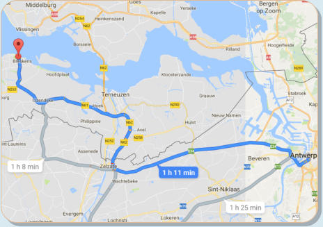 Anfahrt über Antwerpen bzw. Zelzate (siehe Plan)